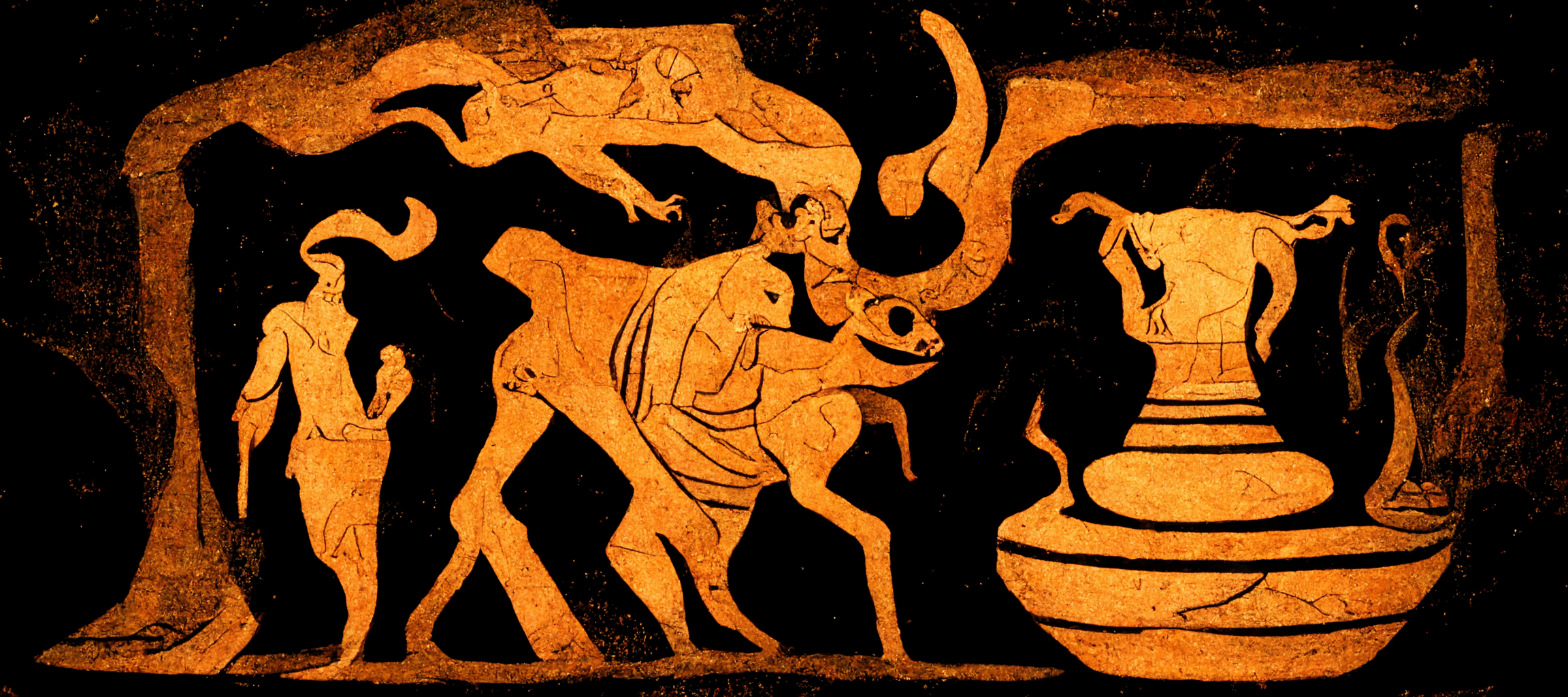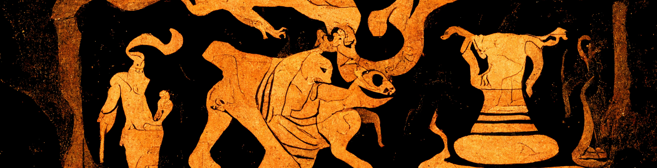 Theseus looked at the vase his Dad was pointing at. A huge bull-like beast with horns was painted across it, a man broken in half across its neck, blood spurting in the air.